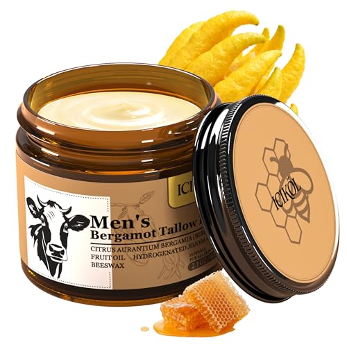 Grass-Fed Beef Tallow Balm for Men – Whipped Tallow Face Moisturizer & Beard Balm with Manuka Honey – Natural After Shave Care for Dry & Sensitive Skin, 2.1 oz