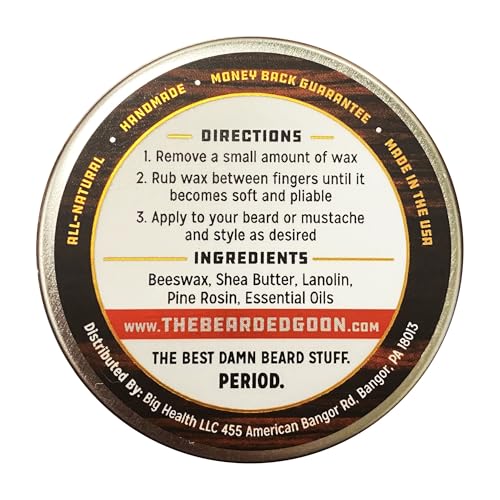 QUALITY, ALL-NATURAL INGREDIENTS: The Bearded Goon’s Beard and Moustache Wax utilizes simple, natural ingredients that are free of dangerous and smelly chemicals and is made in the USA.