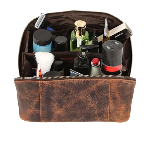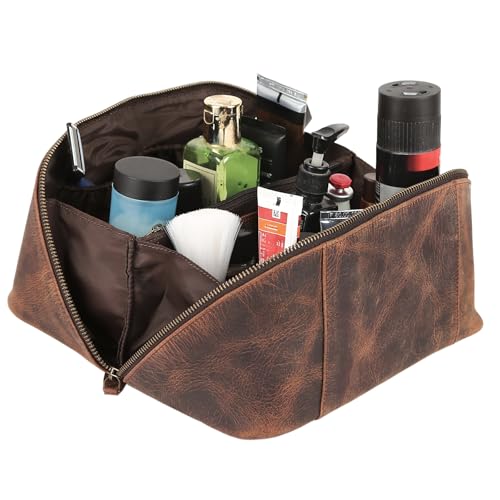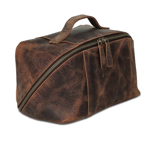 Perfect for gifting — With its elegant look, sturdy zippers, and strong carry handle, this leather toiletry bag makes a thoughtful gift for men and women who value style, organization, and durability.